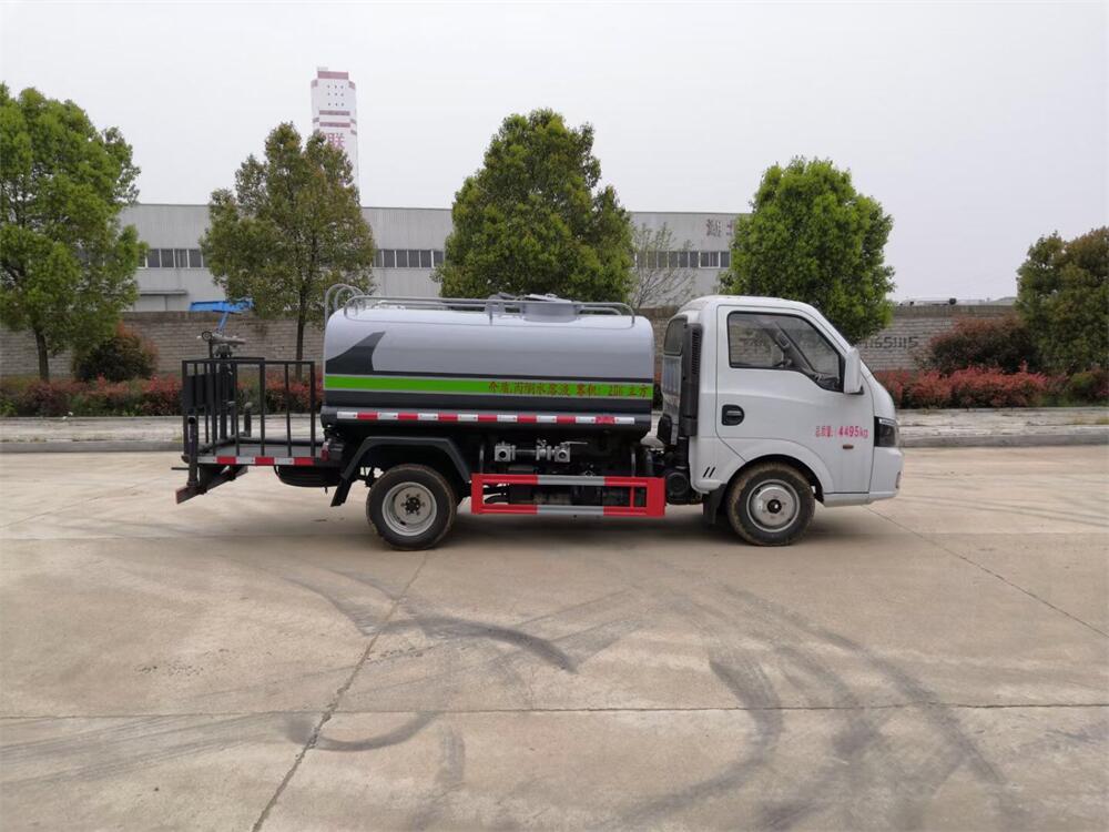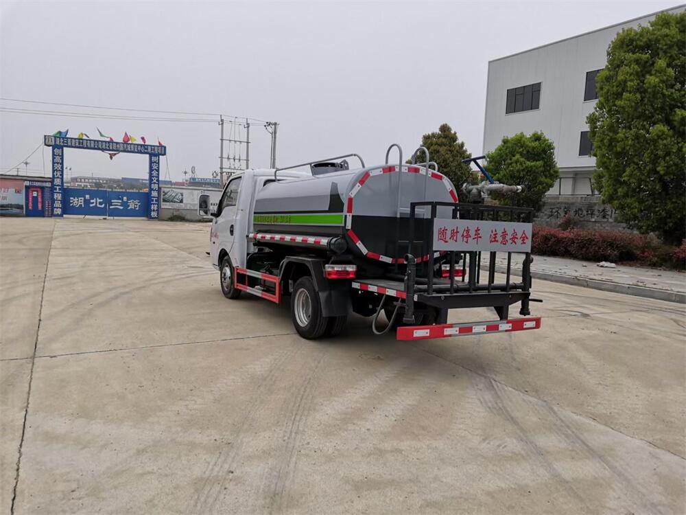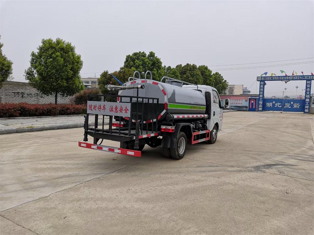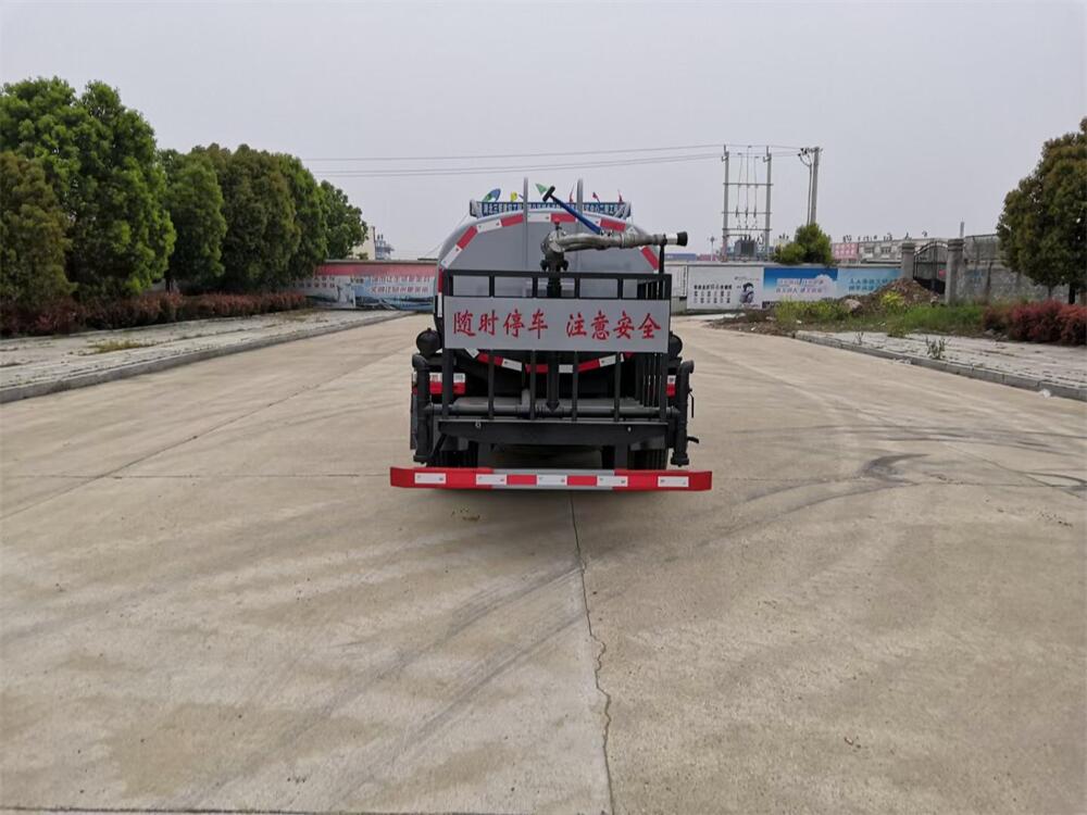 灑水車前裝有鴨形噴嘴或圓頭沖嘴,后面裝有圓柱開灑水噴嘴或蓮蓬頭噴嘴,后部有一工作平臺,裝配有水炮。后部還可裝8個噴嘴(選裝)。