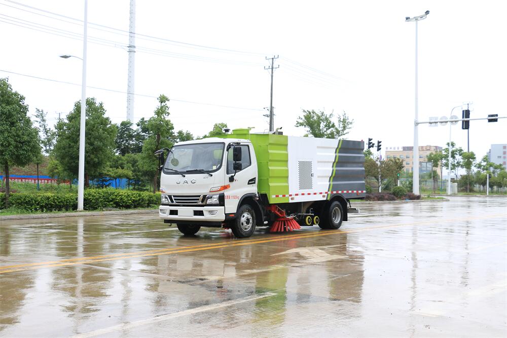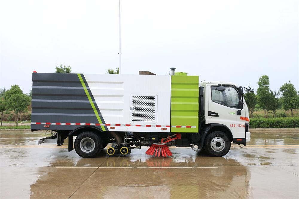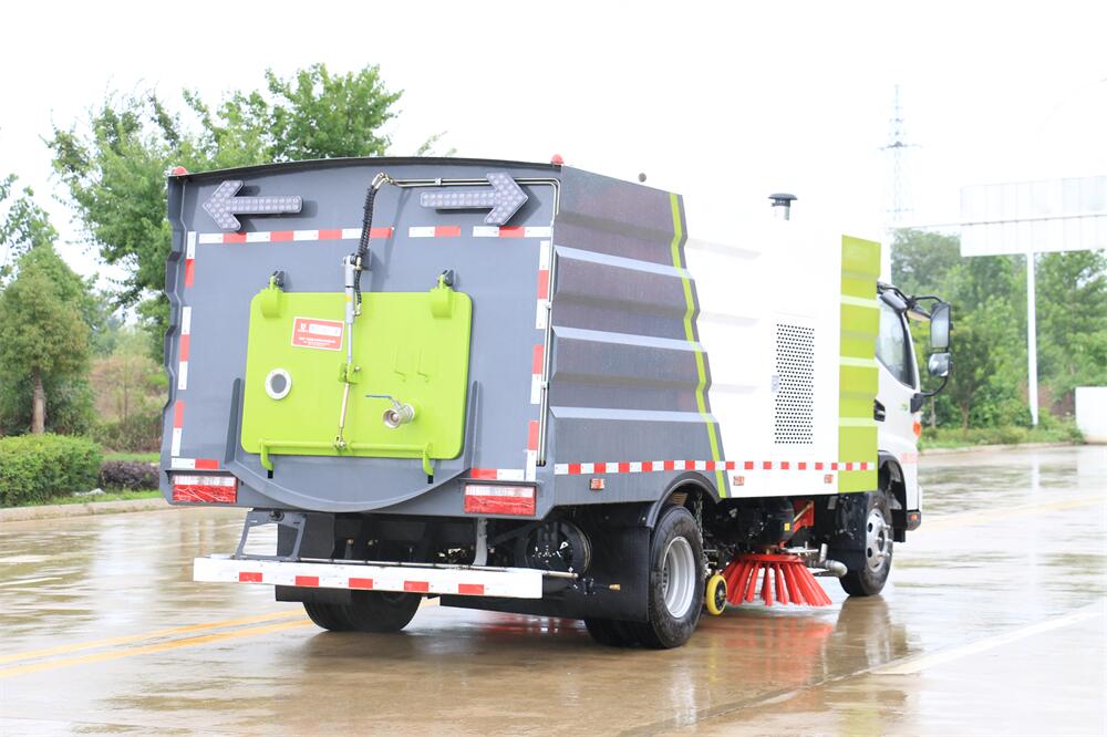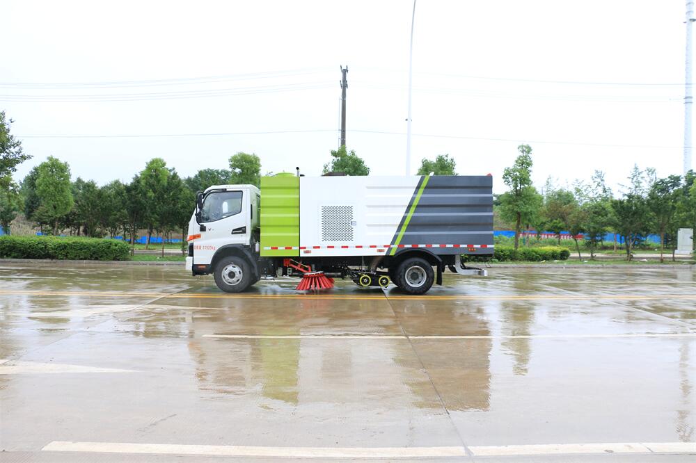 高效洗掃車利用高壓水流及傾斜掃刷將垃圾掃**吸盤前面,在風機產生的負壓作業(yè)下,風流在閉合的回路中將垃圾吸入垃圾箱中貯存,整個作業(yè)過程均是物理原理,不會產生化學廢料或垃圾外泄對環(huán)境的二次污染,同時,后噴霧的降塵有效的降低了空氣中粉塵濃度,解決粉塵污染問題。