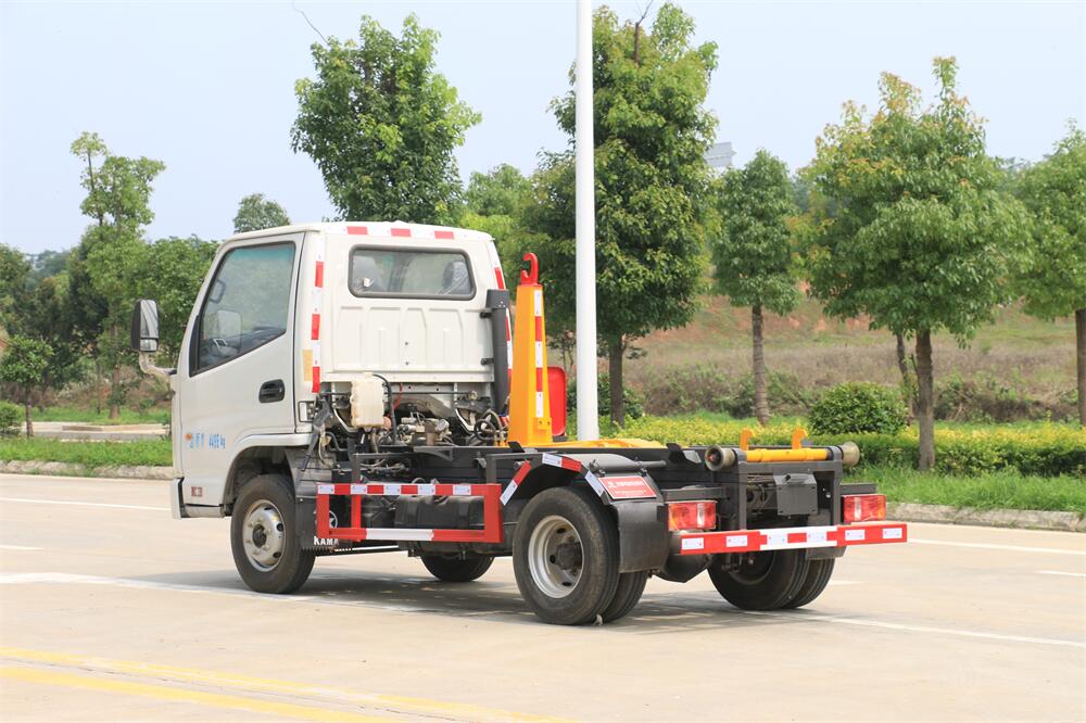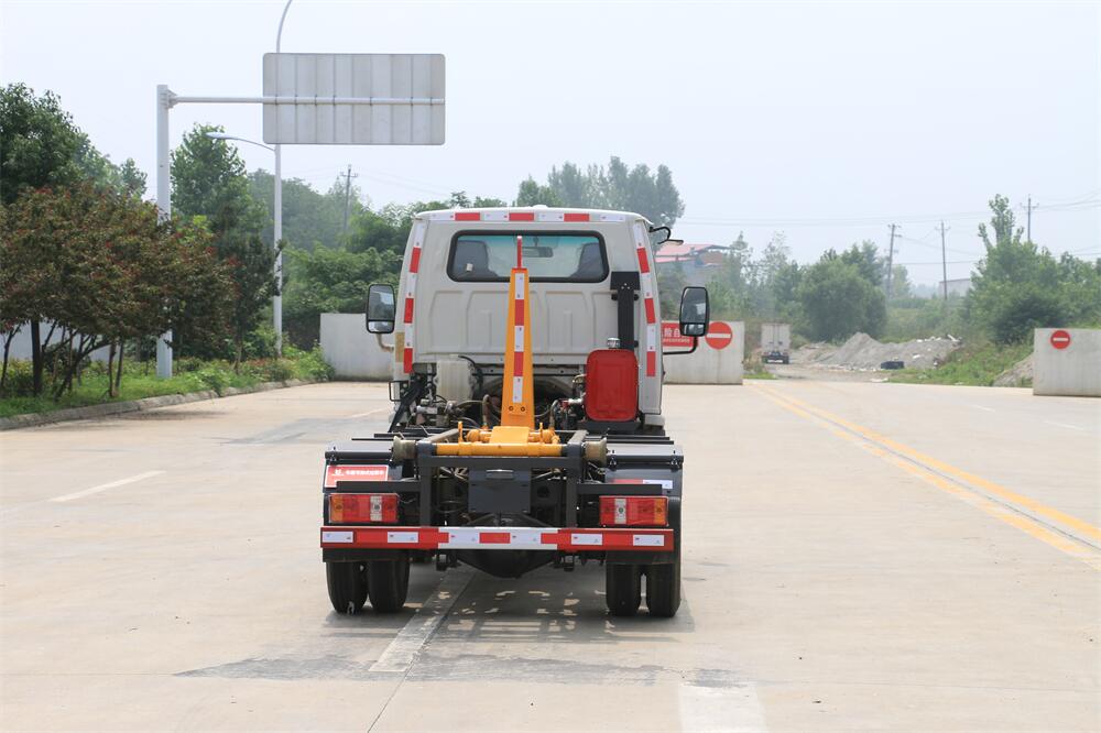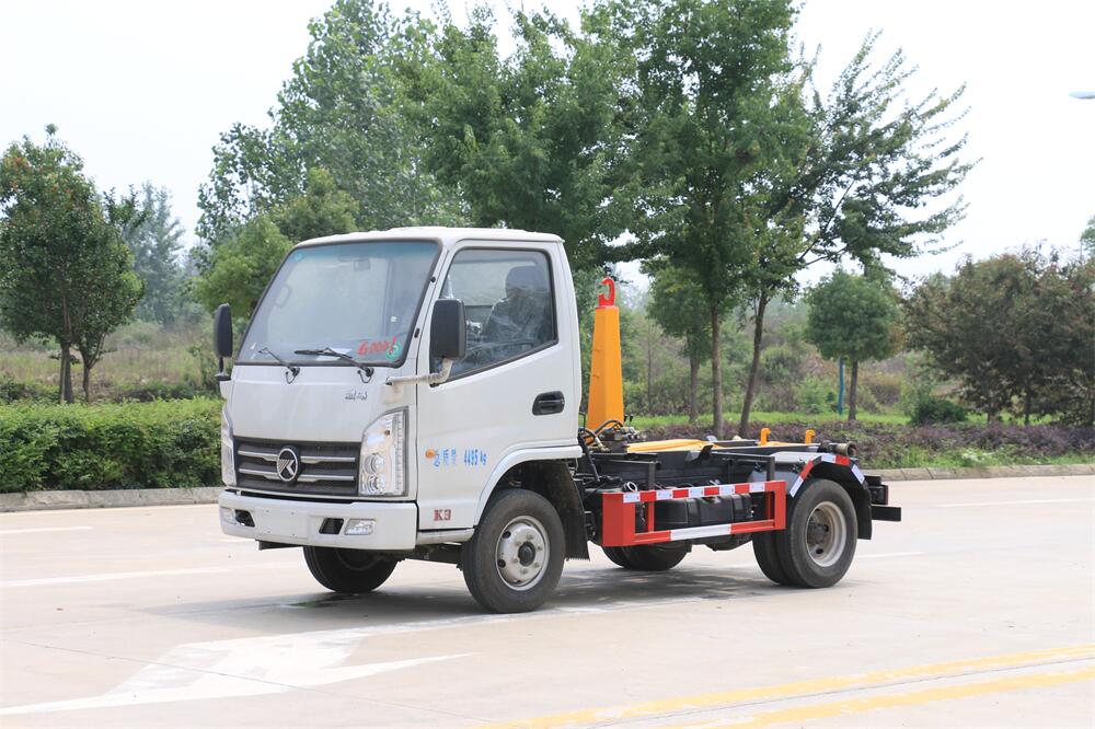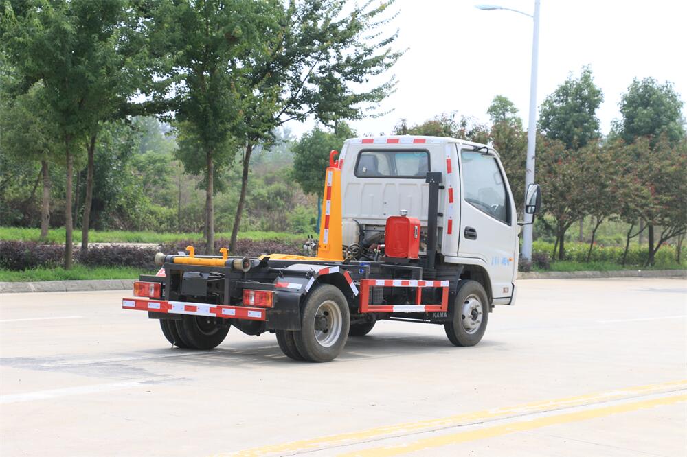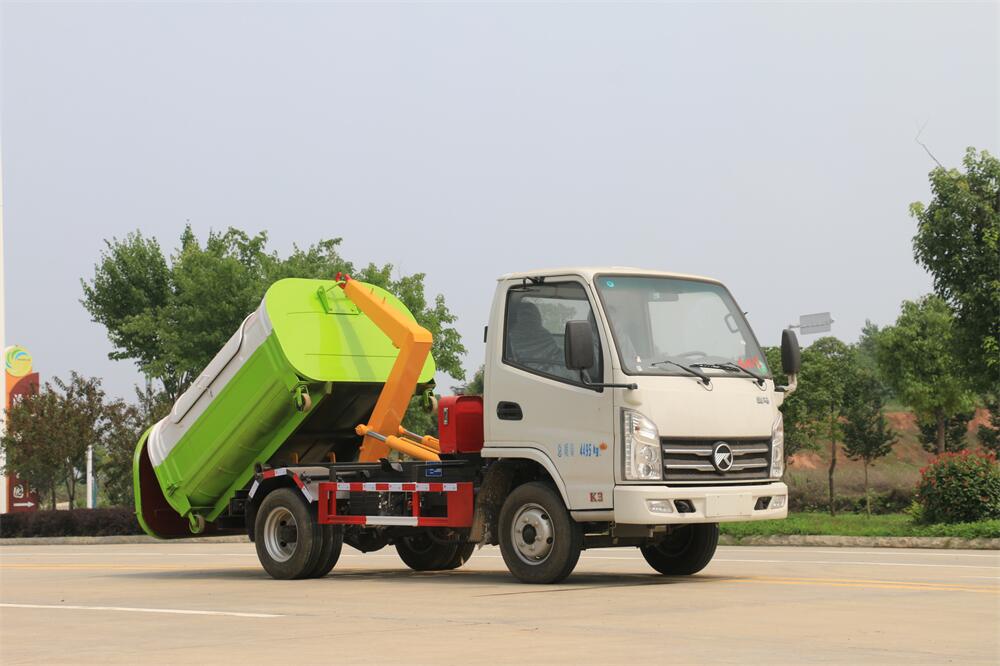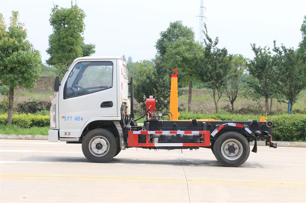 勾臂式垃圾車(車廂可卸式垃圾車)介紹: 車廂可卸式垃圾車又叫拉臂式垃圾車,是一種采用高新設(shè)計(jì)可伸縮的鉤臂,實(shí)現(xiàn)垃圾廂的二次吊裝,自吊上放下,可自行傾倒垃圾的環(huán)衛(wèi)設(shè)備。 拉臂式垃圾車結(jié)構(gòu)簡單,操作穩(wěn)定方便,裝卸效率高,機(jī)械化程度高,節(jié)省人力。鉤臂垃圾車一車可帶多個垃圾廂,在裝卸的運(yùn)輸過程中可有效地避免二次污染。 拉臂垃圾車采用高新設(shè)計(jì)可擺動的鉤臂,垃圾箱由框架、開啟油缸、滑輪、后門和若干加強(qiáng)框架與鋼板焊接而成。調(diào)換貨廂快捷方便,貨廂上帶蓋(倒垃圾時可翻開),鉤臂垃圾車?yán)鴰w可選用碳鋼、不銹鋼材質(zhì)、內(nèi)部采取環(huán)氧樹脂防腐處理,改裝部分與原車底盤為可分離式,維修方便且保持了原車的機(jī)動性及行駛性能。