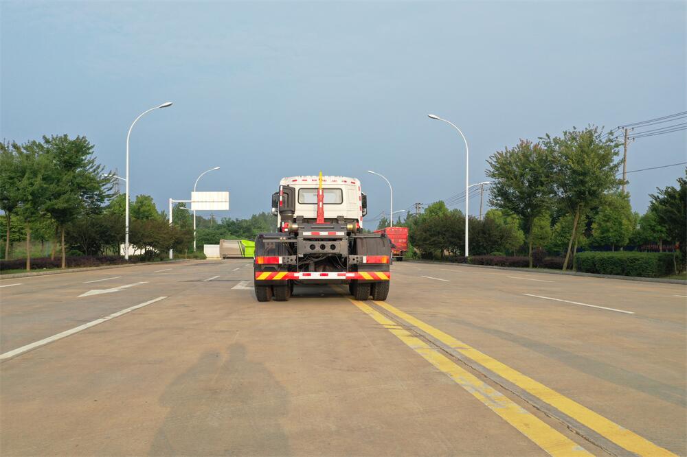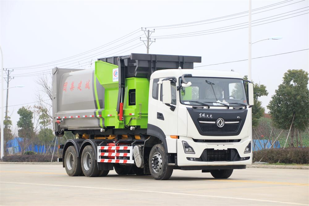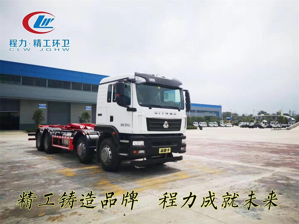 勾臂式垃圾車(車廂可卸式垃圾車)介紹: 車廂可卸式垃圾車又叫拉臂式垃圾車,是一種采用高新設(shè)計(jì)可伸縮的鉤臂,實(shí)現(xiàn)垃圾廂的二次吊裝,自吊上放下,可自行傾倒垃圾的環(huán)衛(wèi)設(shè)備。 拉臂式垃圾車結(jié)構(gòu)簡單,操作穩(wěn)定方便,裝卸效率高,機(jī)械化程度高,節(jié)省人力。鉤臂垃圾車一車可帶多個(gè)垃圾廂,在裝卸的運(yùn)輸過程中可有效地避免二次污染。 拉臂垃圾車采用高新設(shè)計(jì)可擺動(dòng)的鉤臂,垃圾箱由框架、開啟油缸、滑輪、后門和若干加強(qiáng)框架與鋼板焊接而成。調(diào)換貨廂快捷方便,貨廂上帶蓋(倒垃圾時(shí)可翻開),鉤臂垃圾車?yán)鴰w可選用碳鋼、不銹鋼材質(zhì)、內(nèi)部采取環(huán)氧樹脂防腐處理,改裝部分與原車底盤為可分離式,維修方便且保持了原車的機(jī)動(dòng)性及行駛性能。