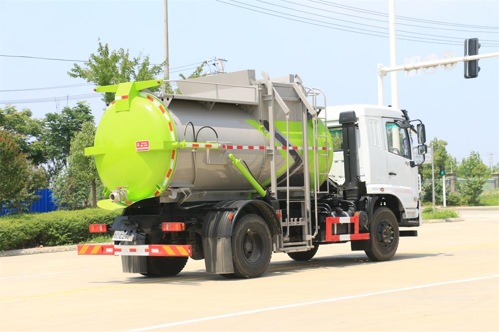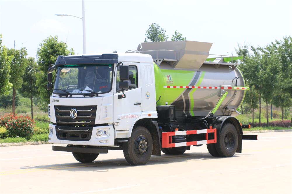 上裝配置:罐體容積10m3,配備120L/240L掛桶提升翻轉(zhuǎn)機(jī)構(gòu),液壓系統(tǒng),后蓋液壓鎖緊開(kāi)啟,罐體可以舉升自卸,尾部帶自流閥;用于運(yùn)輸液態(tài)垃圾,其特點(diǎn)操作簡(jiǎn)單,密封性好,無(wú)泄漏,無(wú)異味;可選裝固液分離功能,推板擠壓功能,常用于餐館的垃圾轉(zhuǎn)運(yùn)處理。