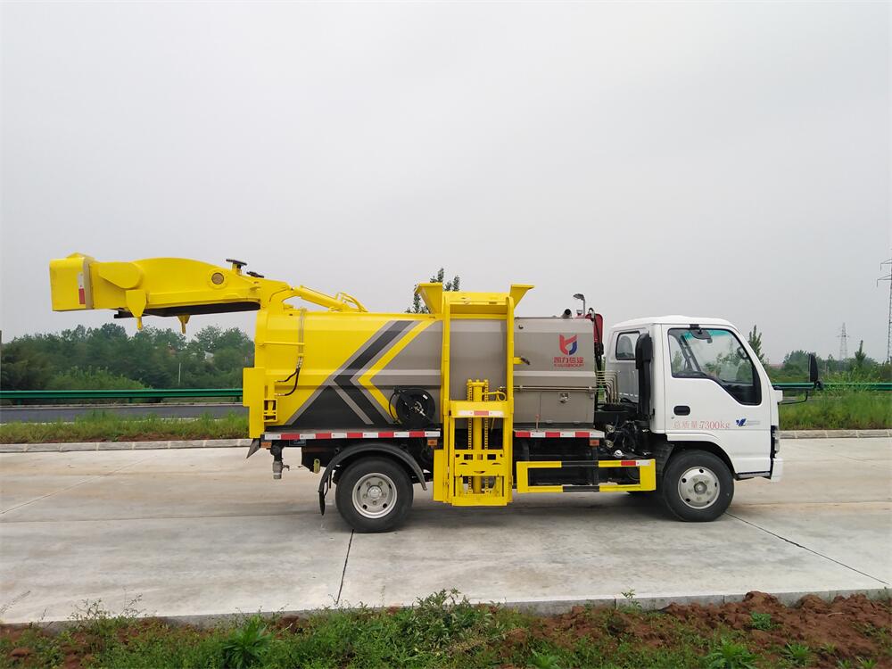 上裝配置:罐體容積6m3,配備120L/240L掛桶提升翻轉(zhuǎn)機(jī)構(gòu),液壓系統(tǒng),后蓋液壓鎖緊開(kāi)啟,罐體可以舉升自卸,尾部帶自流閥;用于運(yùn)輸液態(tài)垃圾,其特點(diǎn)操作簡(jiǎn)單,密封性好,無(wú)泄漏,無(wú)異味;可選裝固液分離功能,推板擠壓功能,常用于餐館的垃圾轉(zhuǎn)運(yùn)處理。