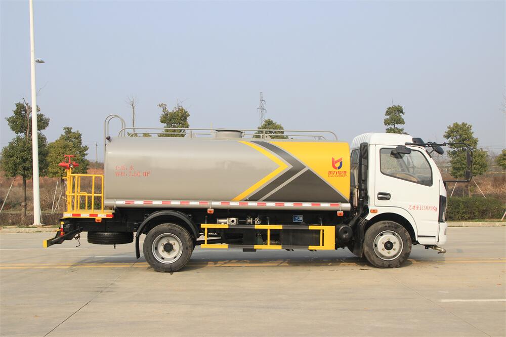 灑水車前裝有鴨形噴嘴或圓頭沖嘴,后面裝有圓柱開(kāi)灑水噴嘴或蓮蓬頭噴嘴,后部有一工作平臺(tái),裝配有水炮。后部還可裝8個(gè)噴嘴(選裝)。