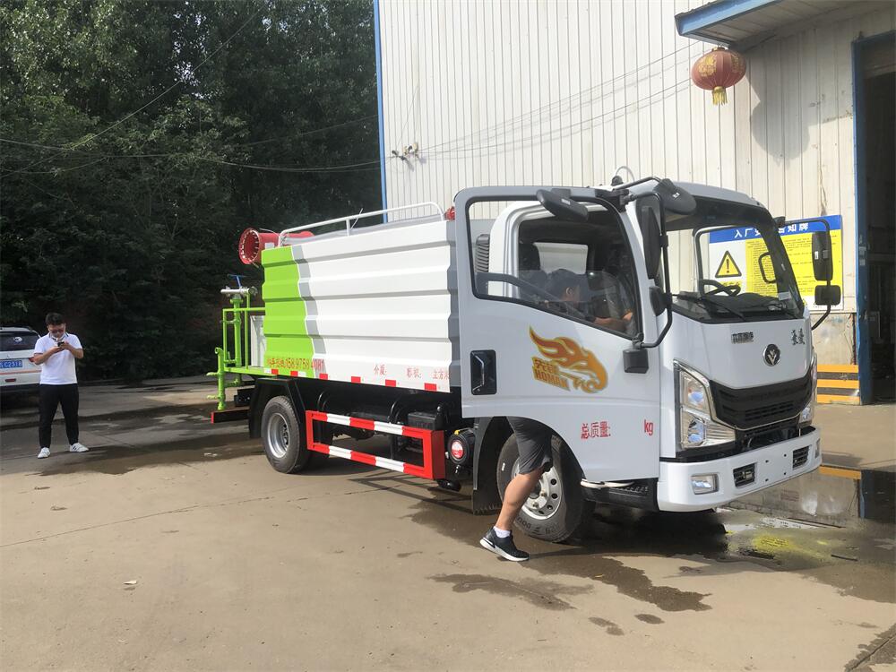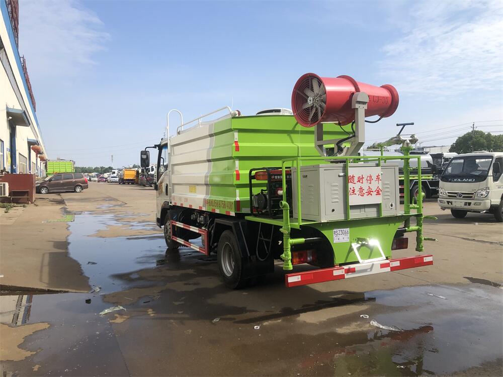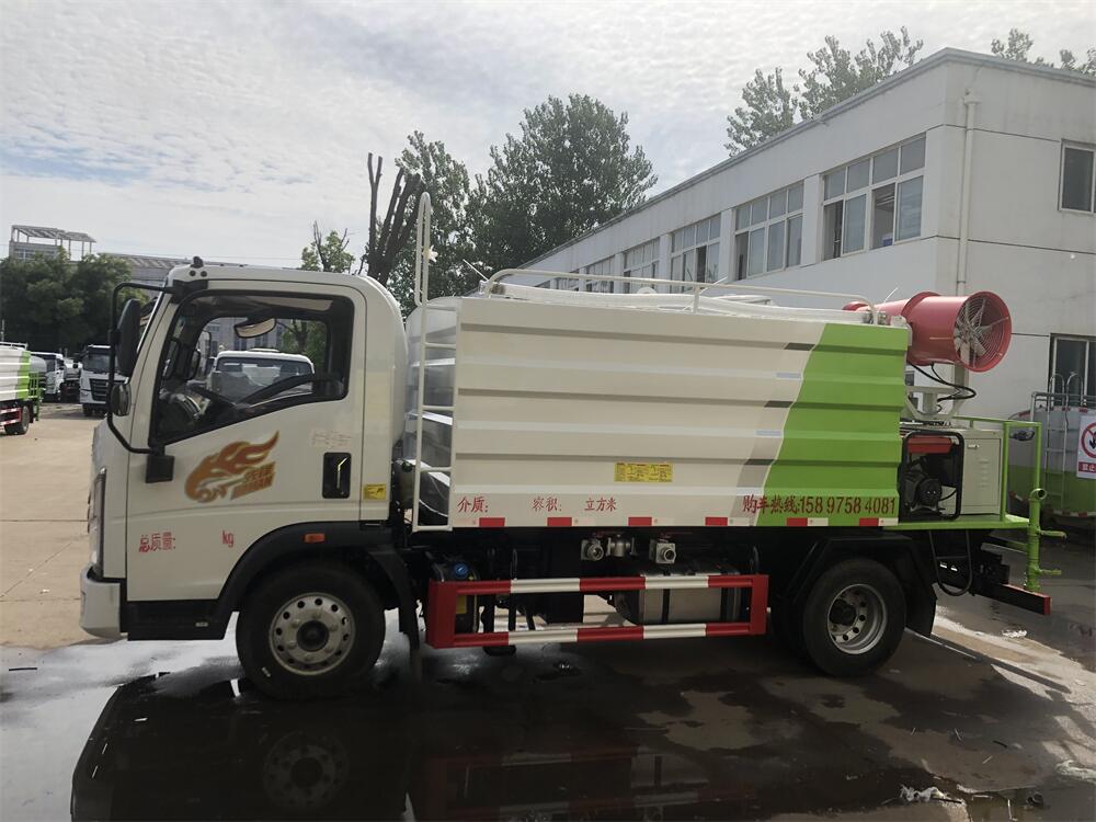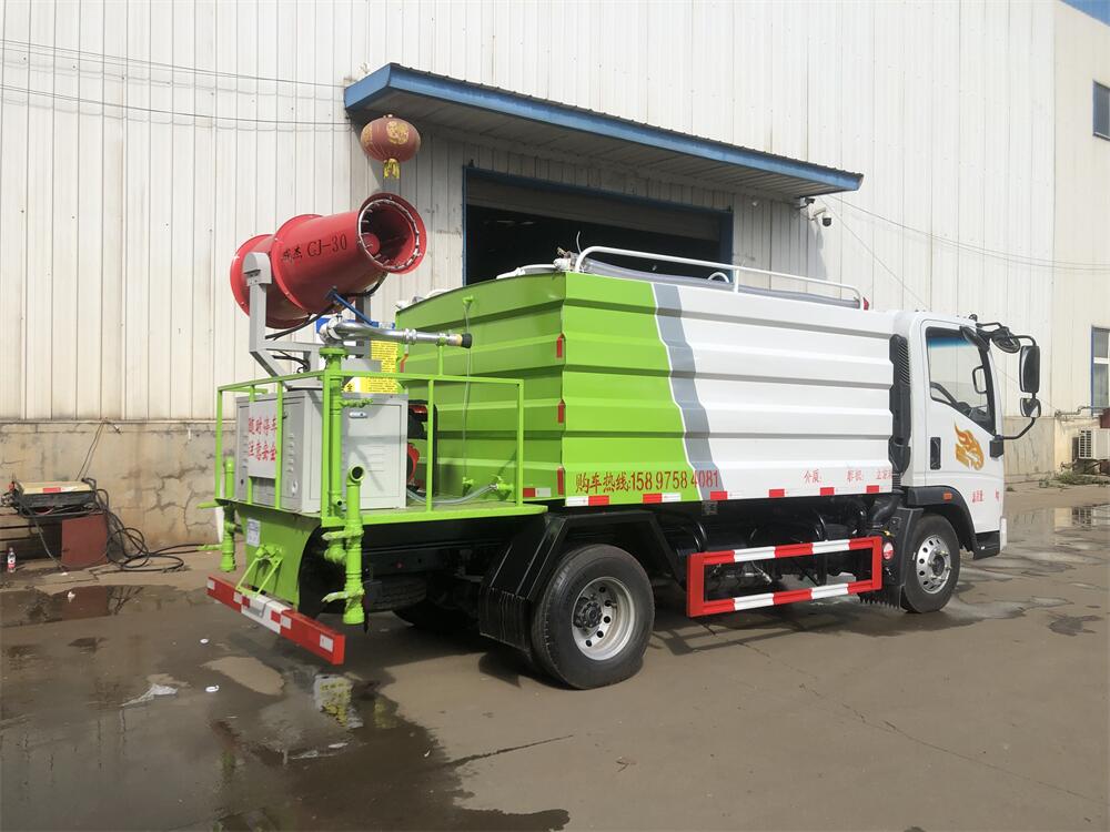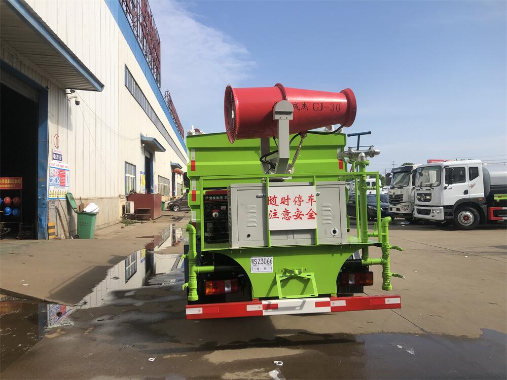上裝配置:罐體容積為 5-7立方,選配風(fēng)送式霧炮機(jī)組射程30米、40米、50米、60米、80米、100米、120米霧炮,罐體鋼板為4mm碳鋼Q235材質(zhì),罐內(nèi)隔板具有防波作用,以減輕汽車行駛時罐體液體沖擊,罐體及整車外形尺寸按照公告。帶大功率專用灑水泵,泵可自吸自排,整車前沖、后灑、側(cè)噴、帶65消防接口,后平臺配CLW-50、CLW-60、CLW-80、CLW-100、CLW-120型風(fēng)送式霧炮機(jī)組;罐體前封頭配大功率柴油發(fā)電機(jī)組;前封頭帶水位計,后平臺主管路帶1寸澆花接口,后爬梯。帶兩根輸水管及陰陽端。罐體顏色:銀/灰/綠,罐體兩側(cè)噴“多功能抑塵車”字樣,貼反光標(biāo)示。