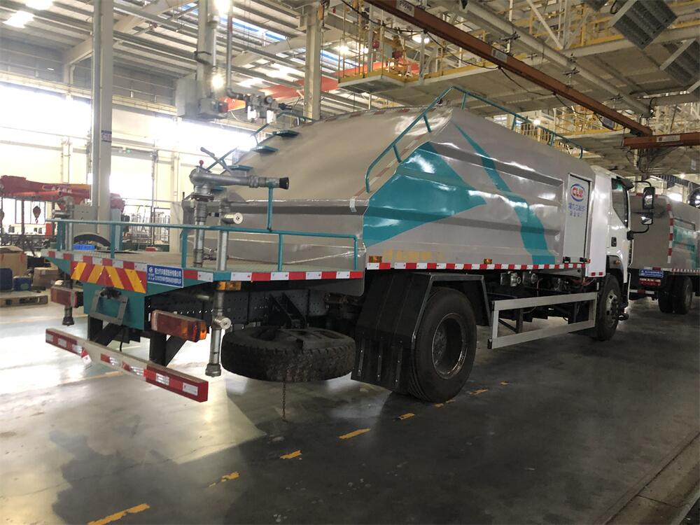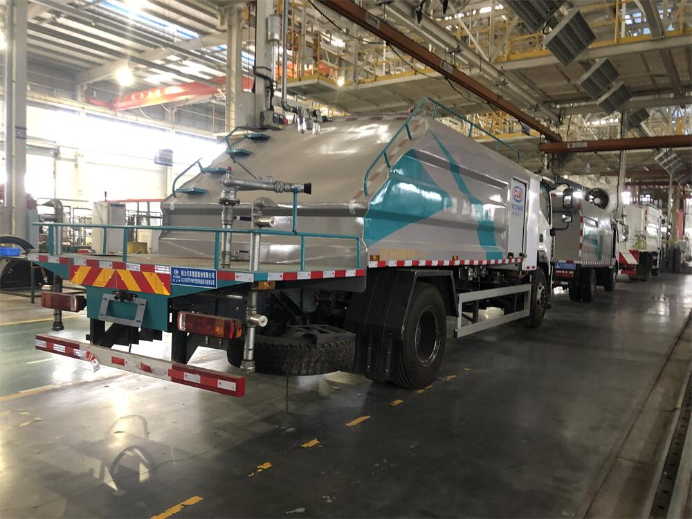 上裝配置:罐體容積為 8立方,選配風(fēng)送式霧炮機組射程30米、40米、50米、60米、80米、100米、120米霧炮,罐體鋼板為4mm碳鋼Q235材質(zhì),罐內(nèi)隔板具有防波作用,以減輕汽車行駛時罐體液體沖擊,罐體及整車外形尺寸按照公告。帶大功率專用灑水泵,泵可自吸自排,整車前沖、后灑、側(cè)噴、帶65消防接口,后平臺配CLW-50、CLW-60、CLW-80、CLW-100、CLW-120型風(fēng)送式霧炮機組;罐體前封頭配大功率柴油發(fā)電機組;前封頭帶水位計,后平臺主管路帶1寸澆花接口,后爬梯。帶兩根輸水管及陰陽端。罐體顏色:銀/灰/綠,罐體兩側(cè)噴“多功能抑塵車”字樣,貼反光標示。