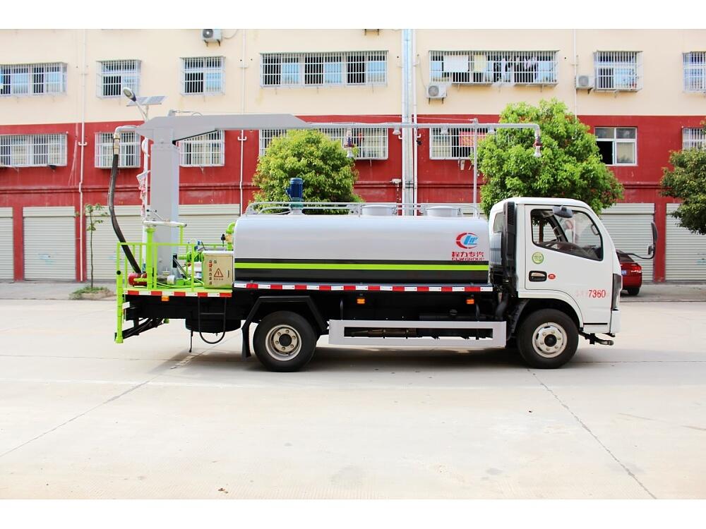 東風(fēng)小多利卡抑塵固化劑噴灑車上裝配置:罐體為5立方圓形罐,罐體內(nèi)部做防腐,帶加熱功能,前沖、后灑、側(cè)噴、高炮,抑塵噴灑桿(帶旋轉(zhuǎn)伸縮功能)。東風(fēng)小多利卡抑塵固化劑噴灑車噴灑桿離地3.5-5米 ,后部平臺帶8KW副發(fā)電機(jī)組,罐體內(nèi)部加兩個(gè)1.5KW電動馬達(dá)(帶攪拌功能)罐體噴漆上白下藍(lán),平臺和噴灑桿藍(lán)色。遙控操作噴灑桿上下左右旋轉(zhuǎn),國內(nèi)知名品牌回轉(zhuǎn)支撐,大品牌油缸。