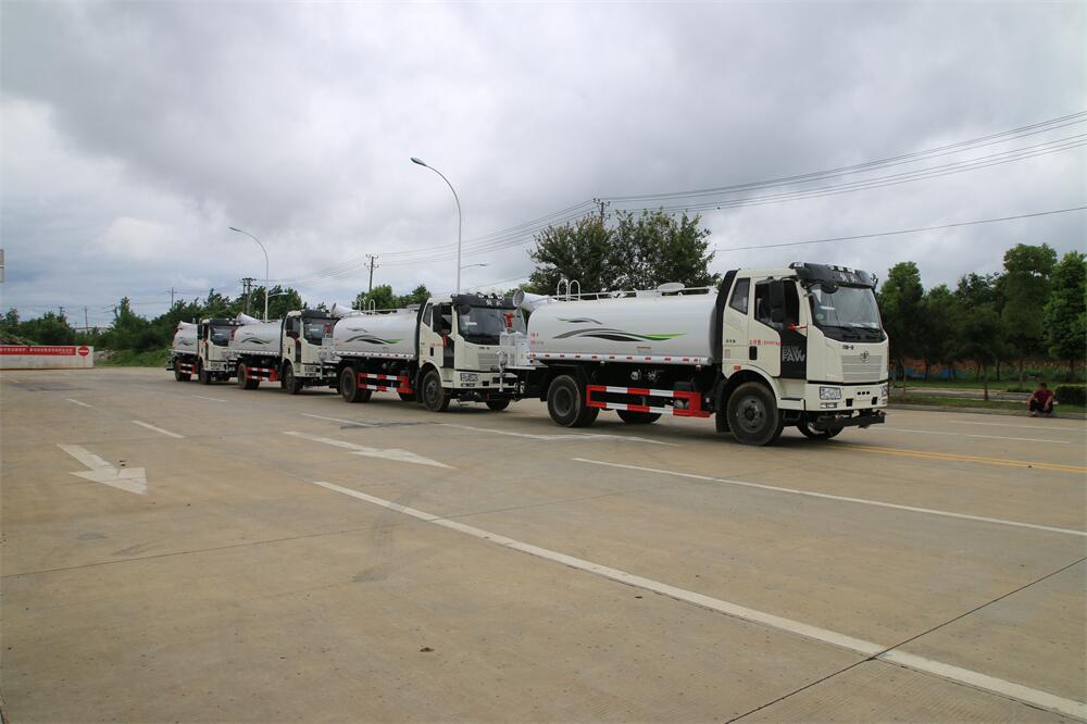 上裝配置:罐體容積 15立方,風送式霧炮機組30米,40米選擇,罐體采用國標Q235碳鋼材質,罐體厚度4MM,前后封頭5MM加厚型,罐體內雙層隔板具有防波蕩作用,以減輕汽車行駛時罐內液體沖擊;灑水車整車及外形尺寸嚴格按照**機動車公告制作而成;裝配大功率專用灑水泵,前沖、后灑、側噴、后平臺帶綠化灑水炮,灑水炮可全方位旋轉,可連續(xù)調成直沖狀、大雨、小雨、毛毛雨;配消防接口,自流閥,濾網,帶自吸自排功能。前封頭帶水位計,后平臺主管路帶1寸澆花接口,后爬梯,帶1個消防接頭,帶1個自流閥,1個過濾裝置,其余標配。