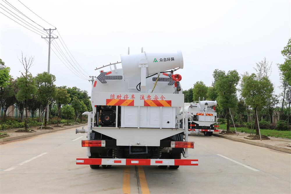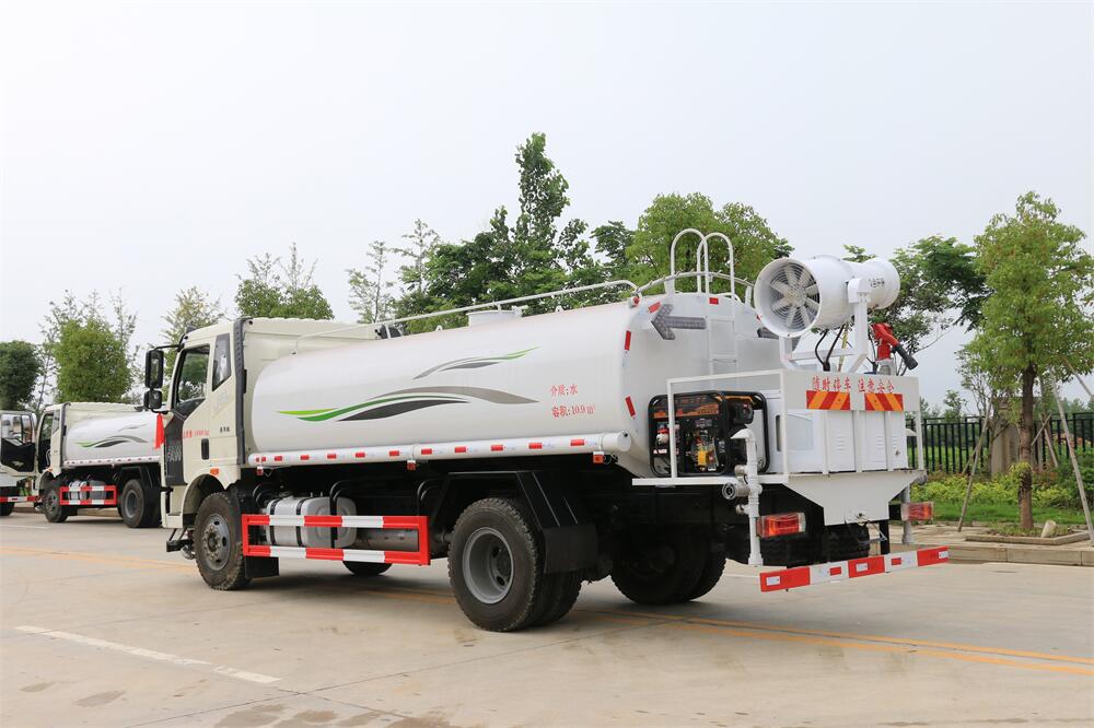 主要由發(fā)動機帶動變速箱,變速箱上安裝的取力器帶動灑水泵,灑水泵產生動力,將罐體內部的液體通過管網噴灑出去。工作范圍:自吸高度:≥7m,灑水寬度:≥14m,**大射程:≥28m;可調節(jié)成柱狀,射程≥28m;也可調節(jié)成霧狀,射程≥5m。