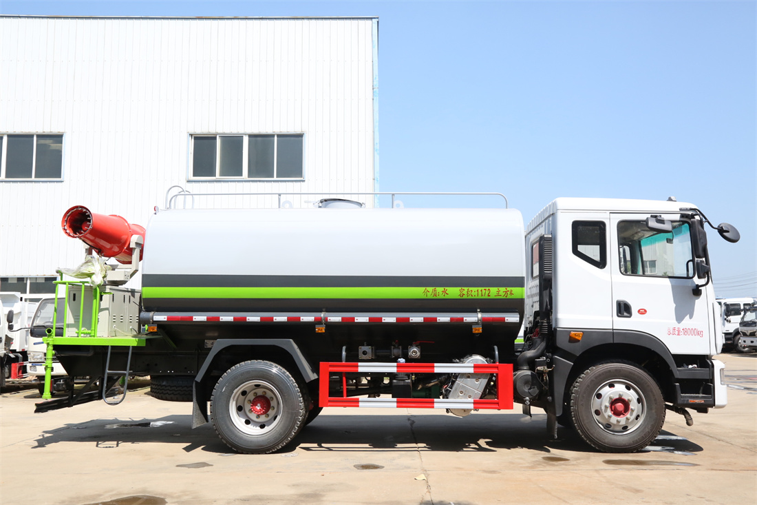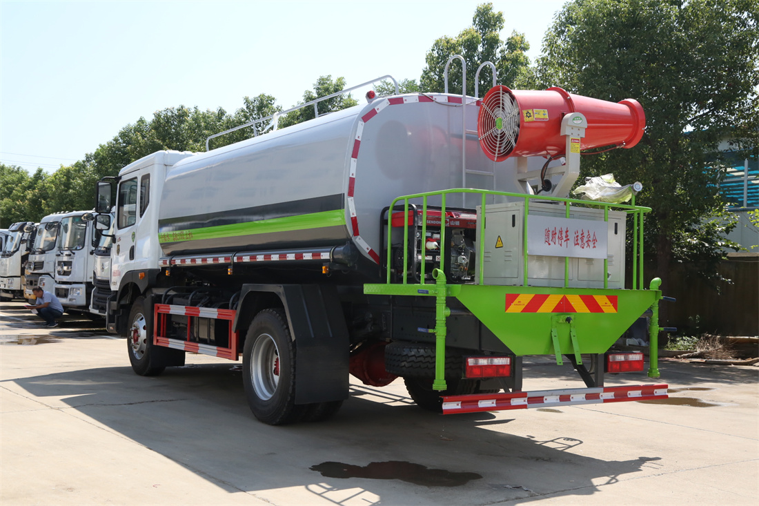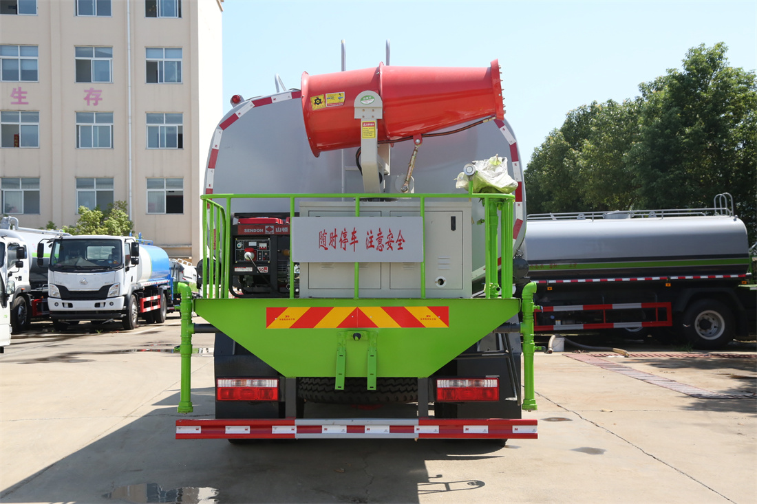 上裝配置:罐體容積 12-15立方,風(fēng)送式霧炮機(jī)組30米,40米選擇,罐體采用國標(biāo)Q235碳鋼材質(zhì),罐體厚度4MM,前后封頭5MM加厚型,罐體內(nèi)雙層隔板具有防波蕩作用,以減輕汽車行駛時罐內(nèi)液體沖擊;灑水車整車及外形尺寸嚴(yán)格按照**機(jī)動車公告制作而成;裝配大功率專用灑水泵,前沖、后灑、側(cè)噴、后平臺帶綠化灑水炮,灑水炮可全方位旋轉(zhuǎn),可連續(xù)調(diào)成直沖狀、大雨、小雨、毛毛雨;配消防接口,自流閥,濾網(wǎng),帶自吸自排功能。前封頭帶水位計,后平臺主管路帶1寸澆花接口,后爬梯,帶1個消防接頭,帶1個自流閥,1個過濾裝置,其余標(biāo)配。