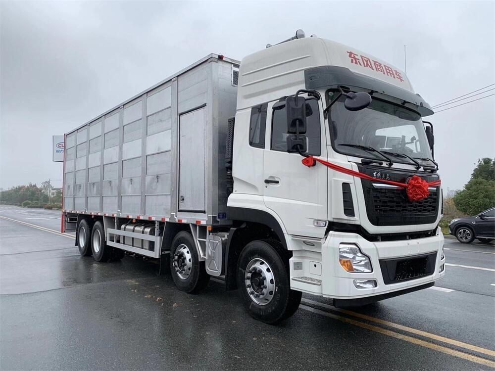 總質量31噸,整備質量15.5噸,額定載質量15.3噸,整車長度11.8-12米,寬度2.5-2.55米,高度3.9-3.98米,貨箱長度8.3-9.3米,箱體鋁合金制作,上中下三層,帶噴淋,喂食功能,可開關側窗,高轉速防風通風換氣扇。后部帶液壓升降尾板,可遠程**。副車架部分采用高強度鋼,能更好應對顛簸路面。帶一套備用發電機。配備冷暖空調,采用全新通風設計,保證前后溫度一致。空氣清新,恒溫,有效保證畜禽成活率。設計合理,堅固耐用,箱體內部清洗方便,無死角,無夾縫。讓消毒更徹底。