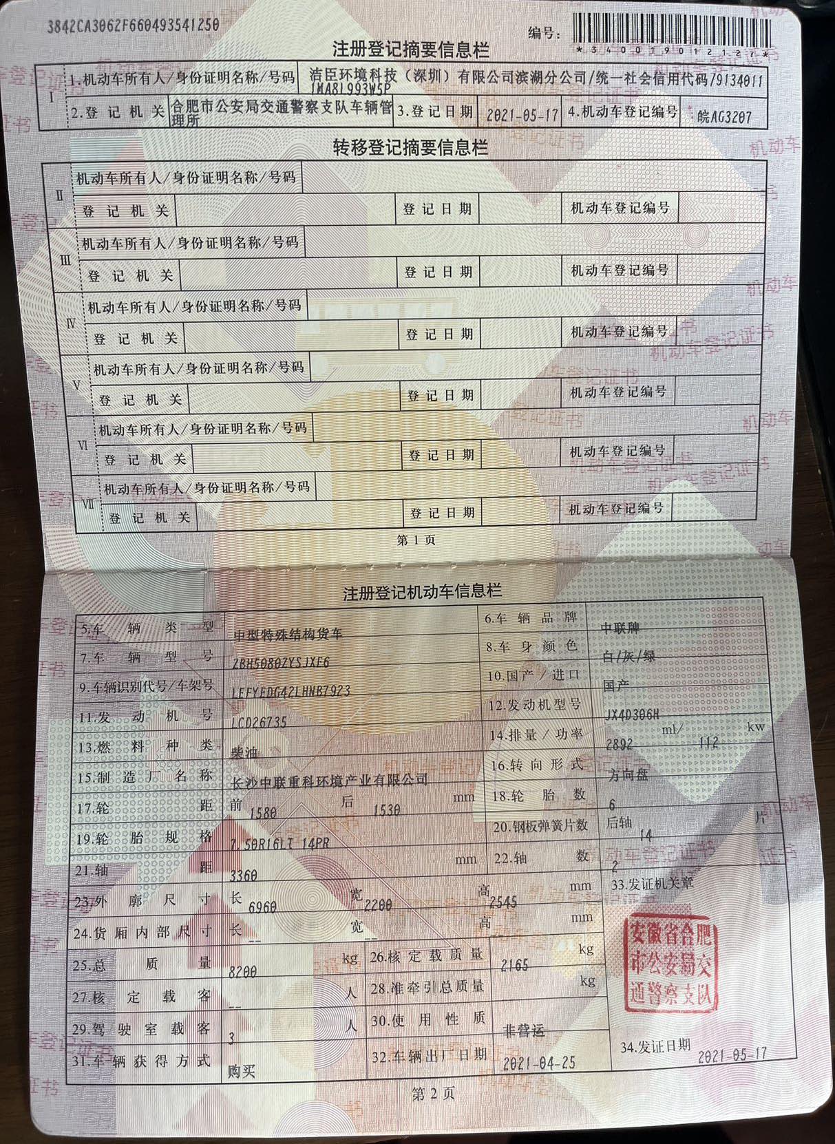 二手國六中聯6方壓縮垃圾車 2??年份:2021年5月 3??發動機:江鈴152馬力,國六 4??底盤配置:江鈴凱運底盤,3360軸距,750鋼絲胎,五檔變速箱