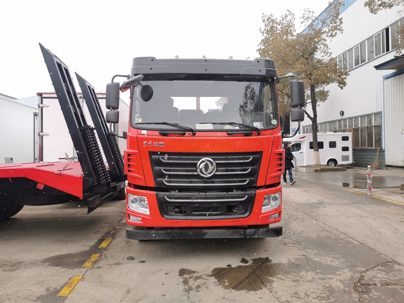 車型亮點:ABS防抱死系統 .大燈高低調節. 剎車間隙自動調整臂. 防飛濺.ABS氣囊坐椅,原廠空調,GPS,北斗行車記錄儀,可拉15噸挖機拖車。可定制雙節液壓折疊爬梯,拉15噸以下推土機,攤布機,鉆井設備,小轎車等等工程機設備。