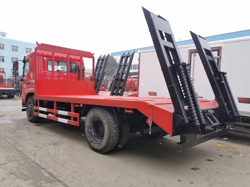 上裝采用5毫米花紋鋼板,120*120方鋼做橫梁,加強型雙爬梯.可定做液壓爬梯,可承載15噸以下挖機。也可加裝絞盤,可拉事故車等。公告拓展有雙節爬梯公告,可做雙節爬梯拉叉車,壓路機等鉆井設備!