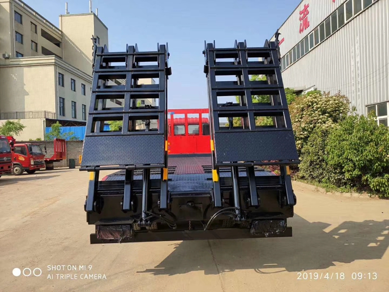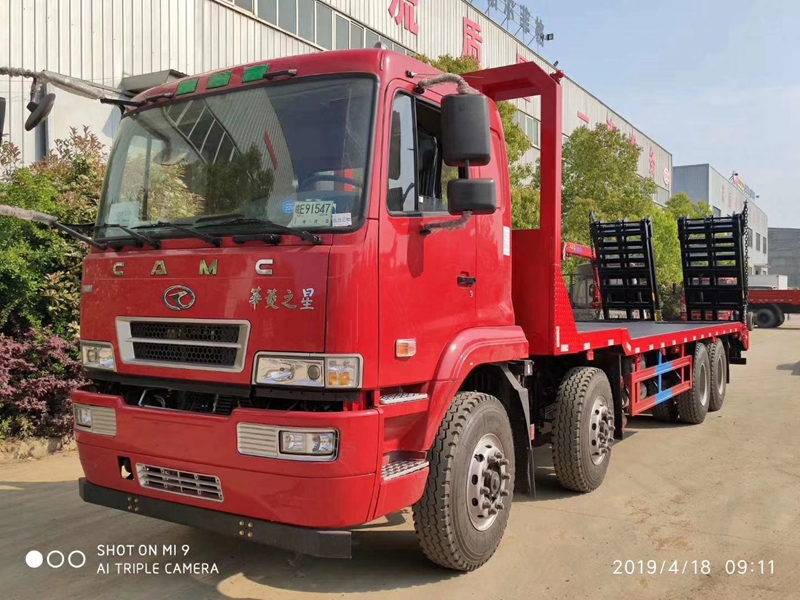 其他備注:該車專用裝置為平板,用于工程機械和一些不可拆卸貨物的長途運輸.隨底盤選裝駕駛室。防護材料:Q235碳鋼,連接方式:左右側面防護采用焊接連接, 后部防護與車架采用焊接連接,后部防護斷面尺寸(mm):50×120,后部防護離地高度(mm):490;ABS型號:ABS/ASR-24V-4S/4M,ABS生產企業:東風電子科技股份有限公司;安裝具有衛星定位功能的行駛記錄儀.發動機型號/油耗申報值對應關系為:WP10.310E53/42.09,CM6D18.290 50/42.24,WP7.300E50/41.67,CM6D18.310 50/42.07,CM6D18.345 50/42.67,MC07.31-50/41.94,WP10.336E53/41.93,CM6D18.375 50/41.73,WP7.300E51/42.40,CM6D10.350 50/41.30。整車長度/軸距/前懸/后懸(mm)的對應關系為:12000/1850+4605+1350/1370(1450,1495,1550)/2825(2745,2700,2645);12000/2240+4215+1350/1370(1450,1495,1550)/2825(2745,2700,2645);11395/1850+4000+1350/1370(1450,1495,1550)/2825(2745,2700,2645);10400/1850+4000+1350/1370(1450,1495,1550)/1830(1750,1705,1650);選裝不同樣式的爬梯結構.選裝不帶平臺的平板.