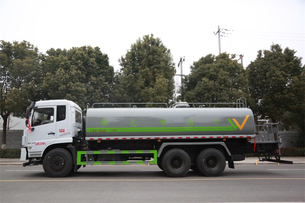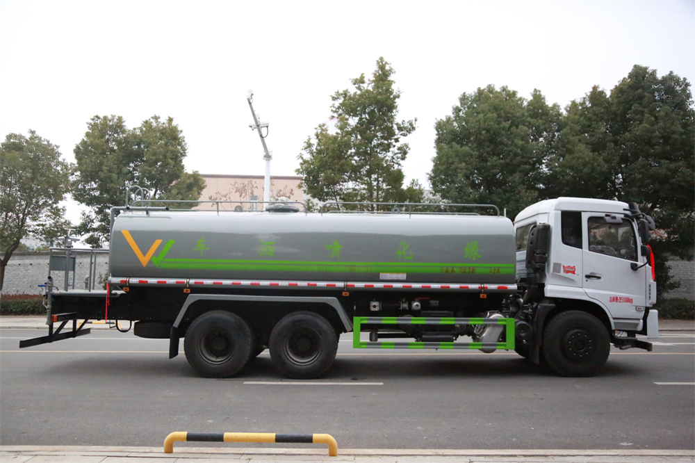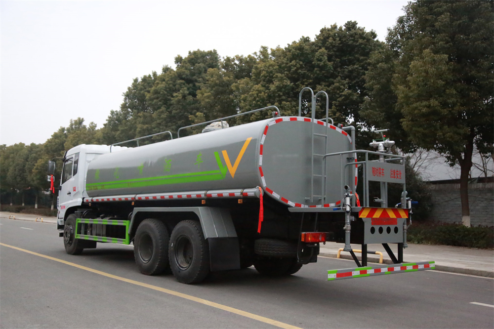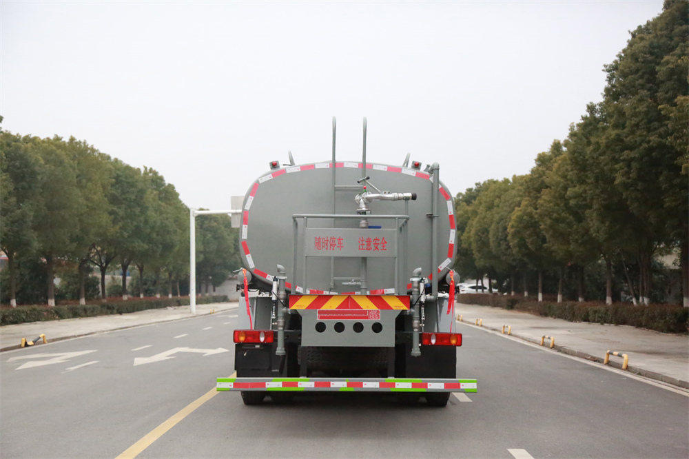 灑水車前裝有鴨形噴嘴或圓頭沖嘴,后面裝有圓柱開灑水噴嘴或蓮蓬頭噴嘴,后部有一工作平臺,裝配有水炮。后部還可裝8個噴嘴(選裝)。